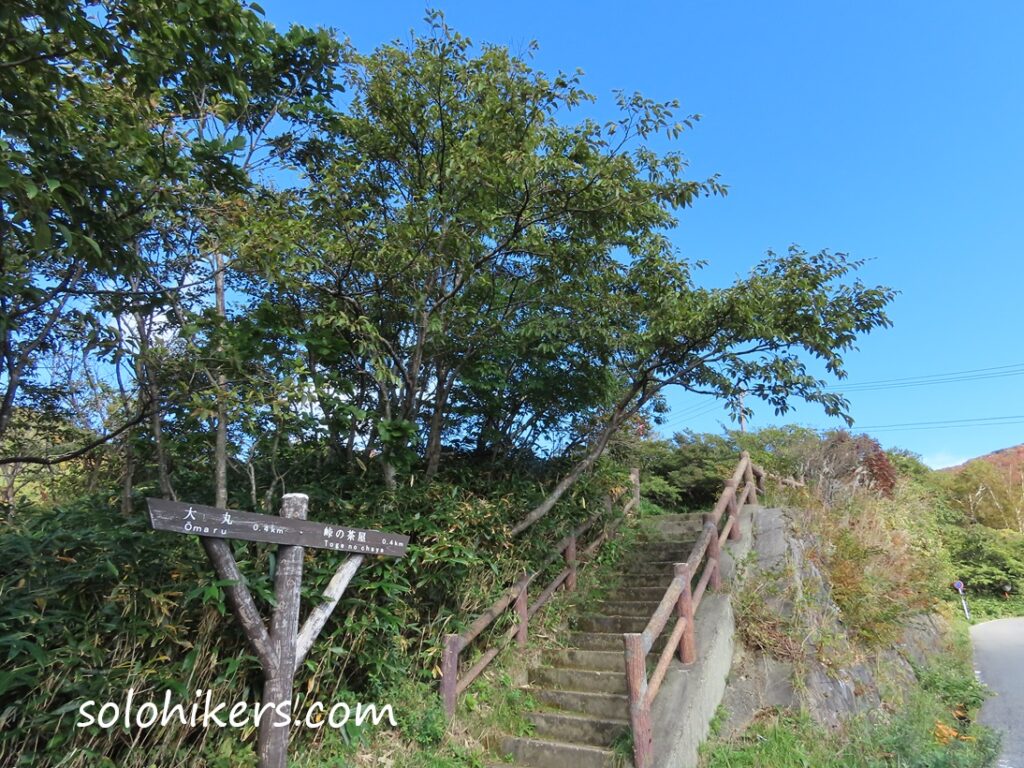 駐車場を出たらこの階段を上がり峰の茶屋方面へ。