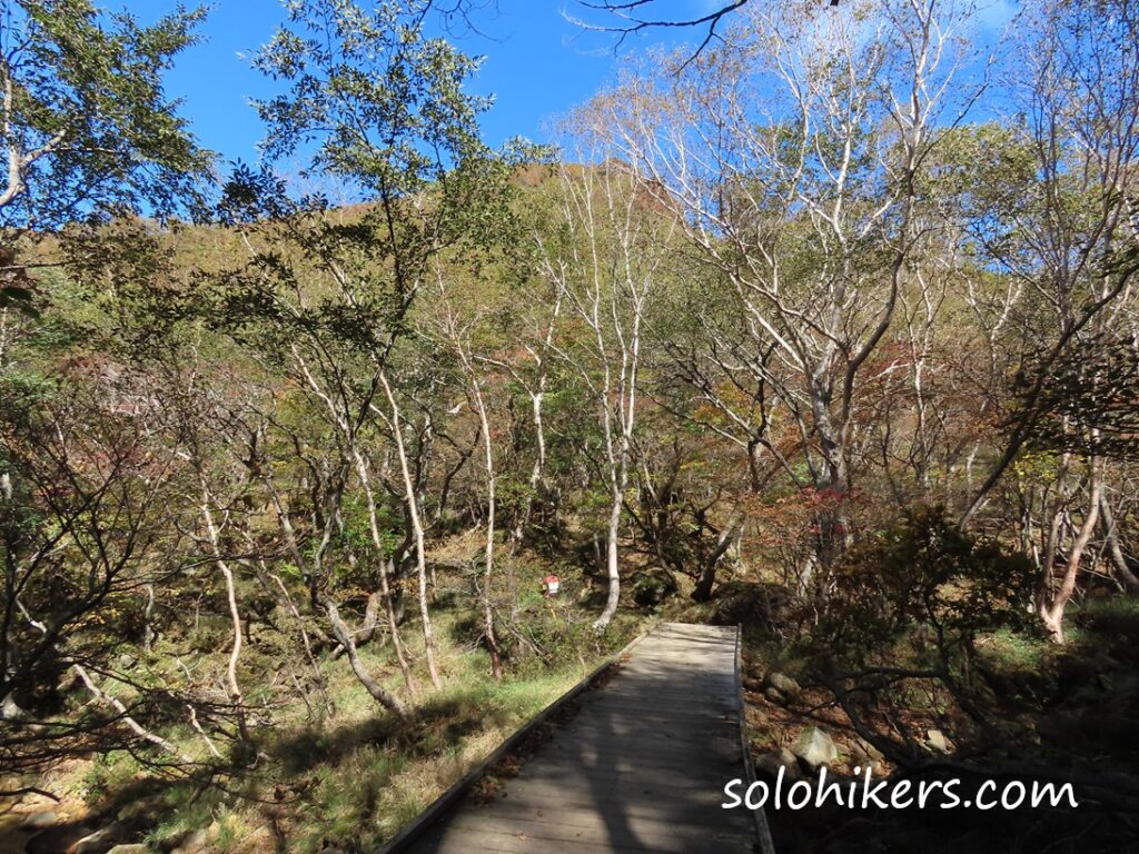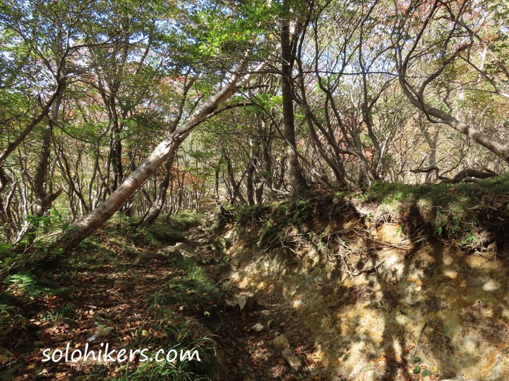 那須岳避難小屋からは緩やかな下りが続き、三斗小屋温泉近辺になるとほぼ平行道。