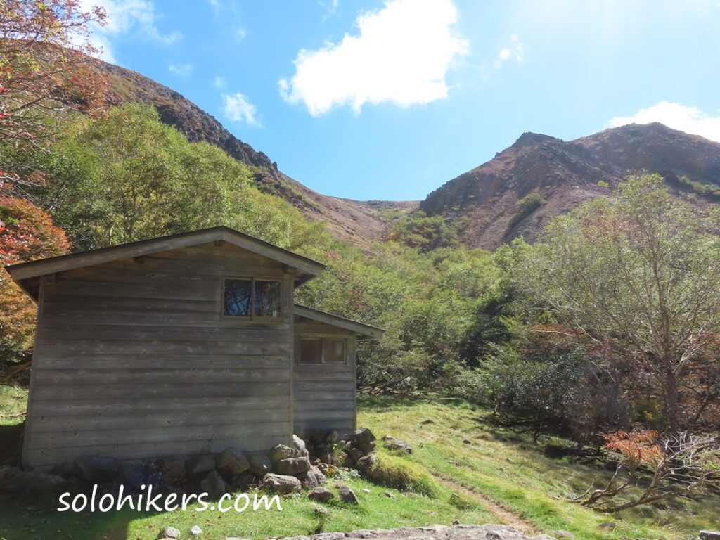 14年ぶりに訪れた峰の茶屋跡避難小屋(1720m)。