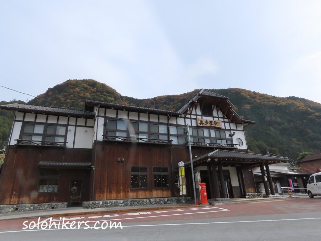 奥多摩駅でバスを降車して駅前の路地へ。