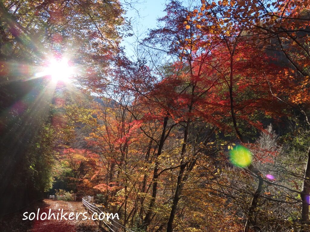 朝陽に輝く紅葉