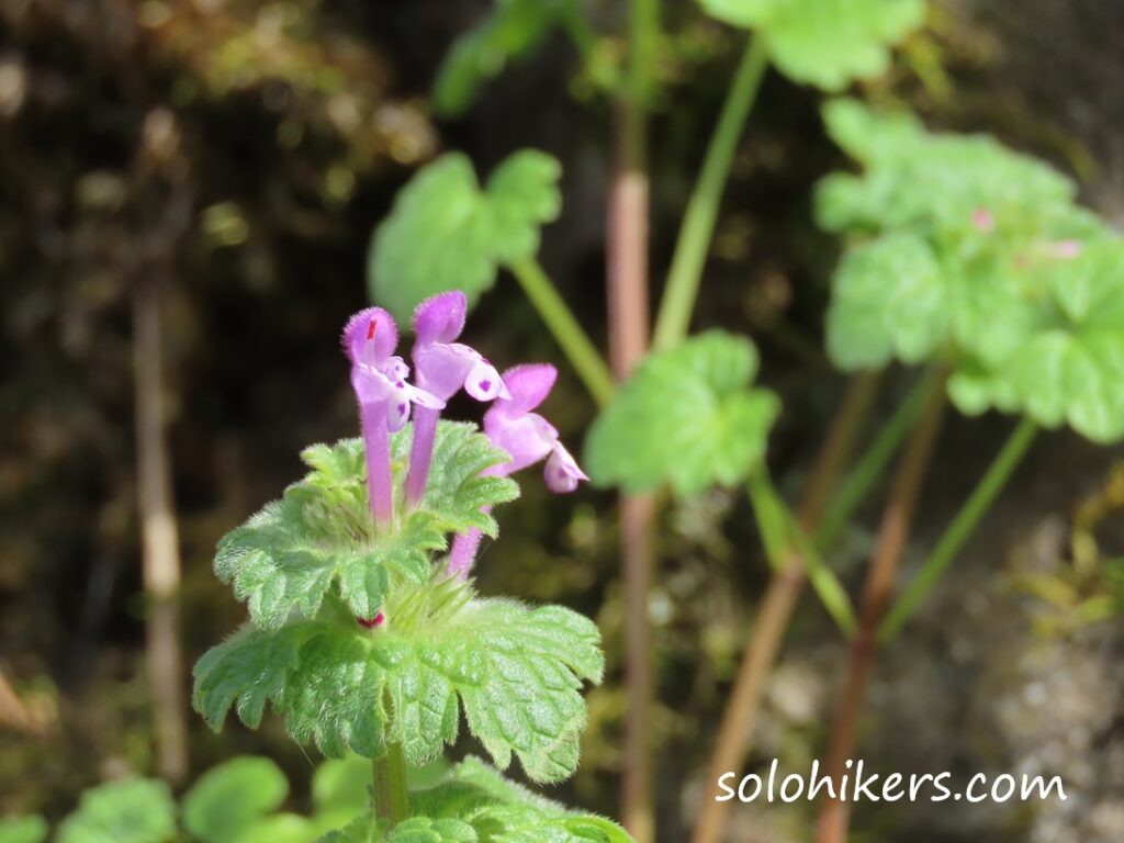 壁面に咲いているホトケノザをズーム。